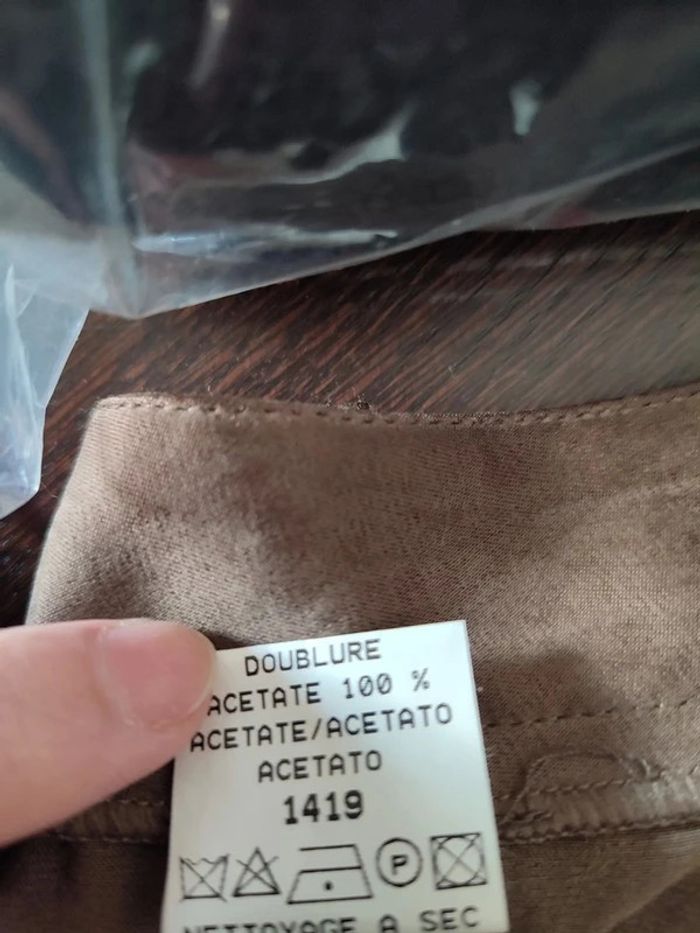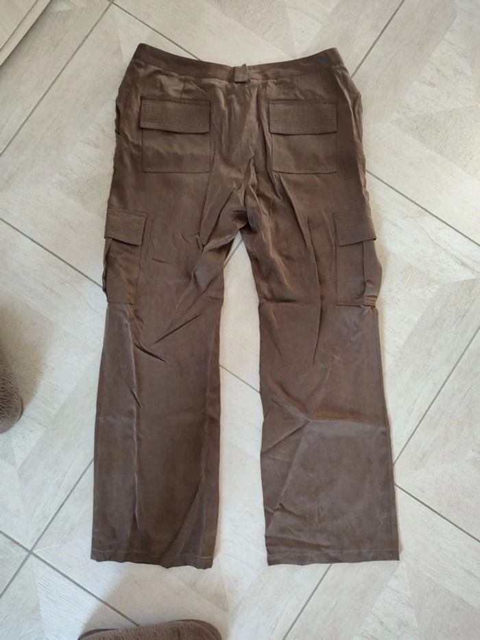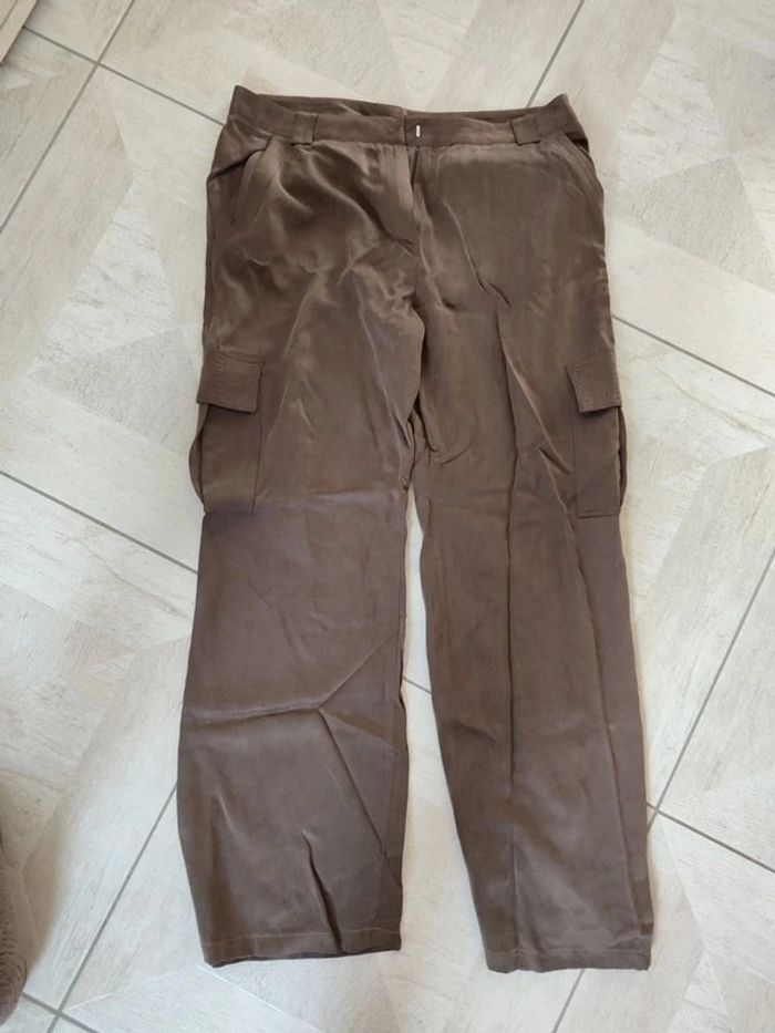 Pantalon suédine marron coupe cargo avec 2 poches sur les cuisses 50 % cupro 50 % viscose Caroll taille 42