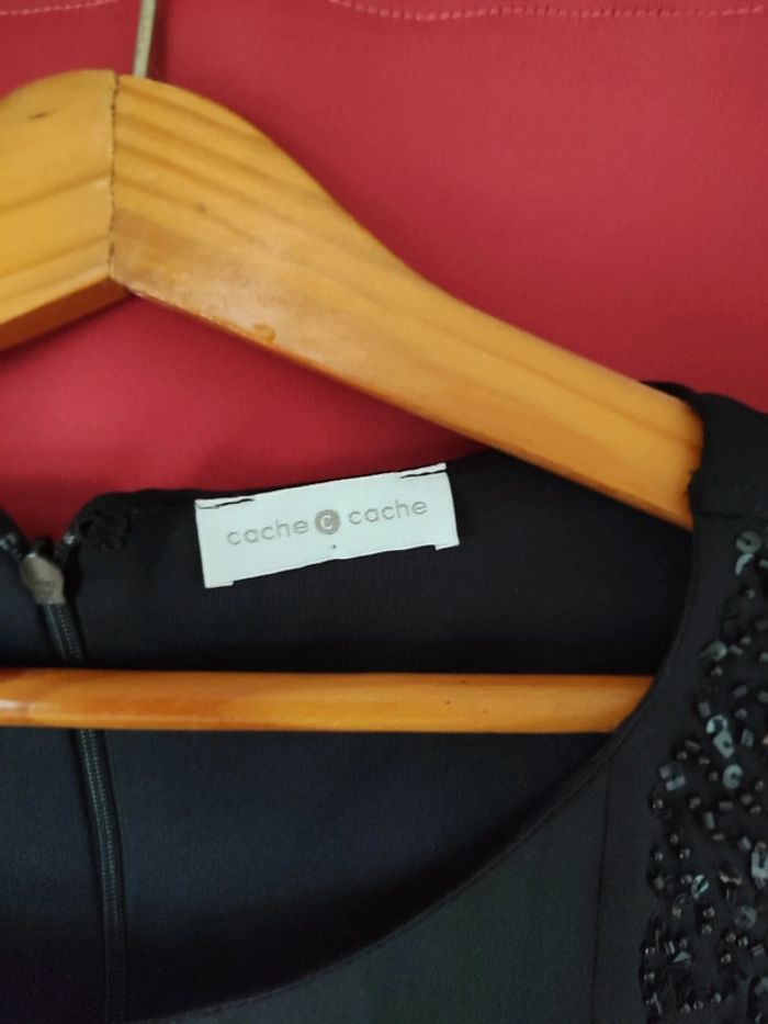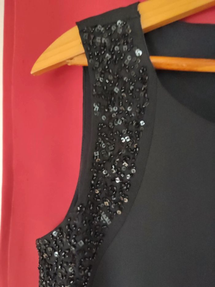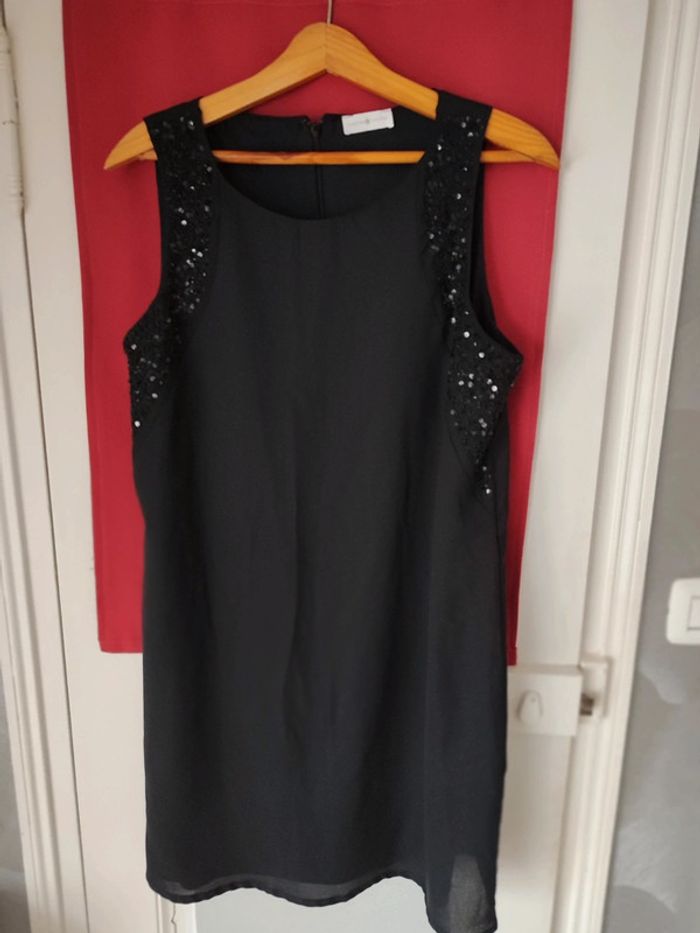 Robe habillée noire manches courtes Sequins, fermeture éclair dans le dos Cache Cache taille 38/40 (étiquette taille coupée)