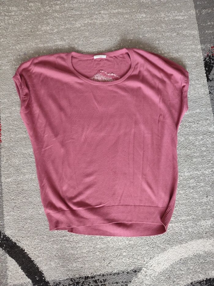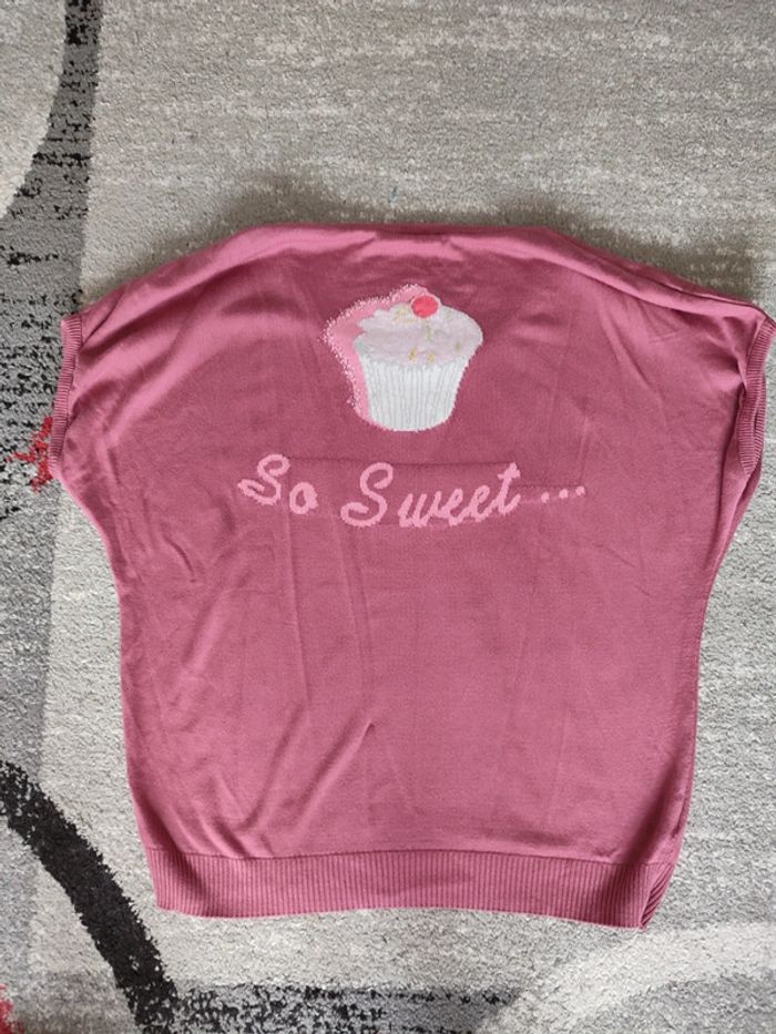 Pull sans manches rose,motif cupcake dans le dos Promod 42 ( pas d'étiquette de taille)