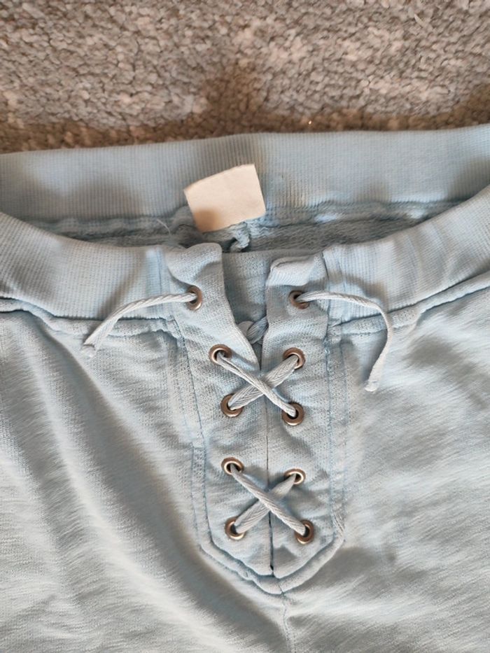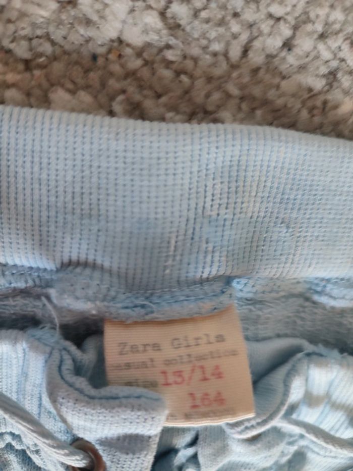 Pantalon matière jogging bleu délavé resserré à la taille par lien croisés Zara taille 13/14 ans