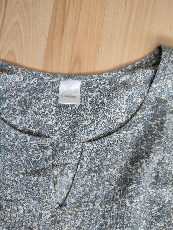 Blouse bleue à fleurs,fond blanc, manches longues Camaïeu taille 40