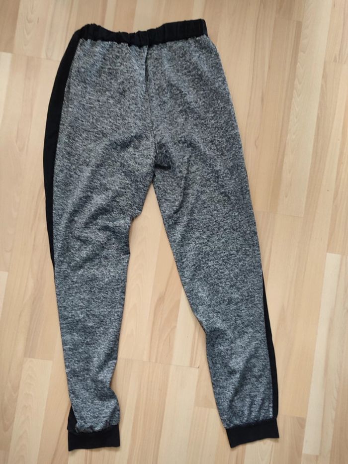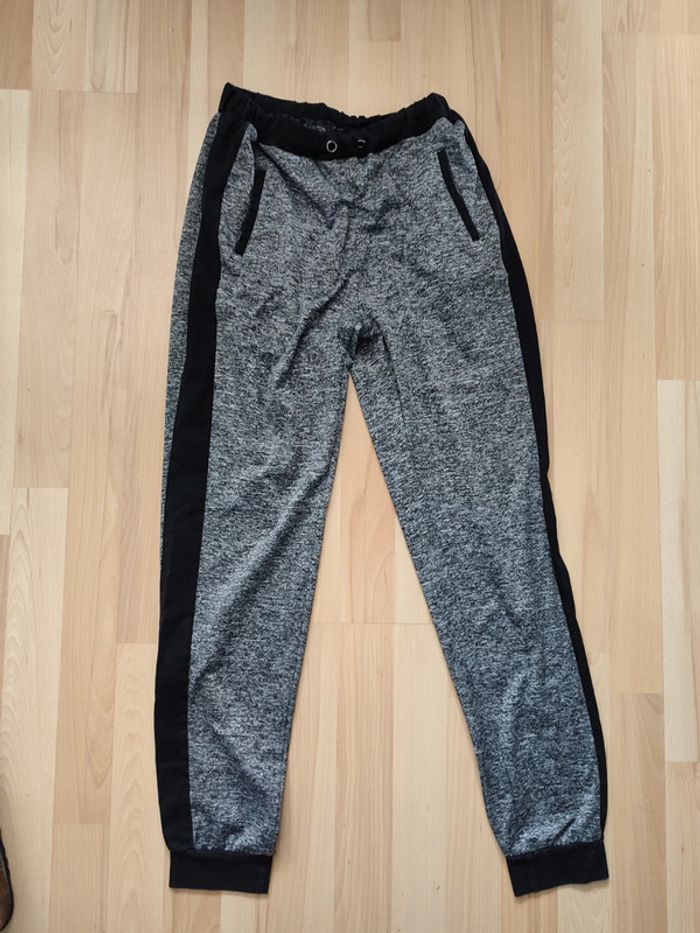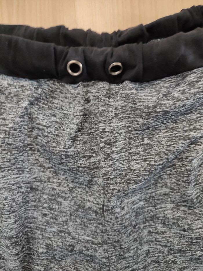 Bas de jogging gris chiné avec bande noire sur le côté taille élastique (absence de cordon) taille 13 14 ans (absence d'étiquette de composition ou de taille)