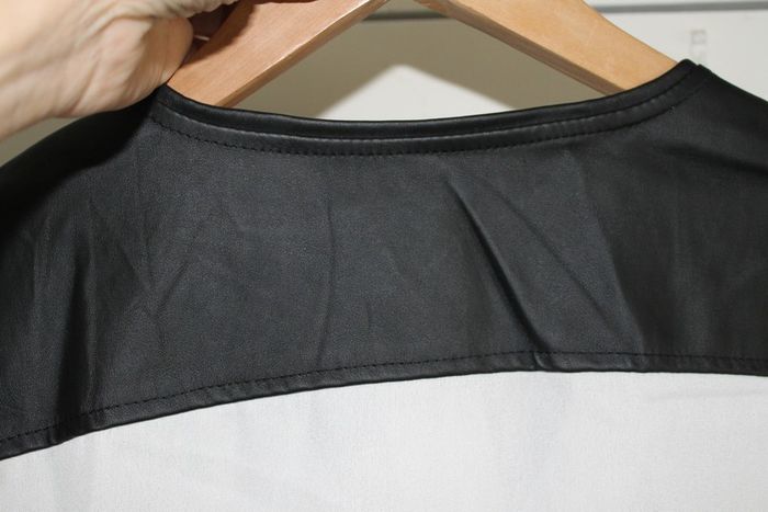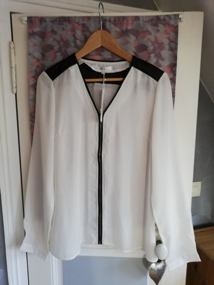 chemisier Neuf blanc,épaules simili cuir noir,fermeture éclair taille 40