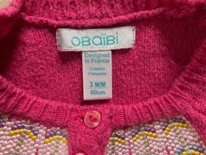 Superbe gilet rose brodé plumes sur l’encolure 3 mois Obaibi - photo numéro 6