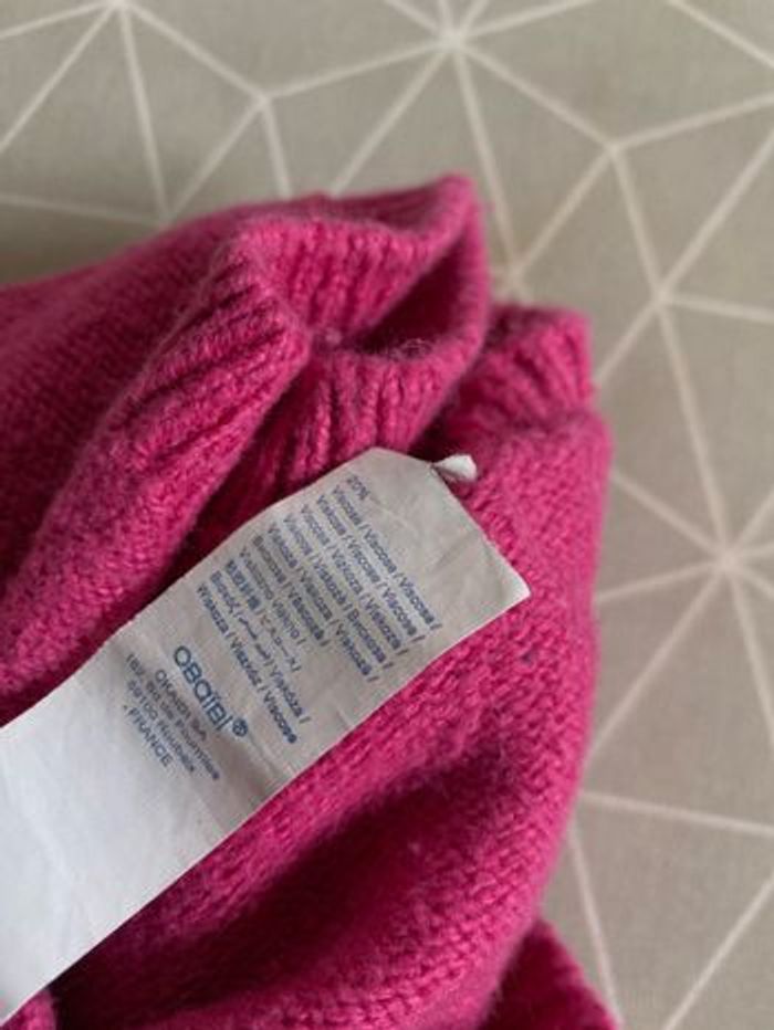 Superbe gilet rose brodé plumes sur l’encolure Taille 3 mois 60 cm 60% coton 20% polyamide 20% viscose Obaibi
