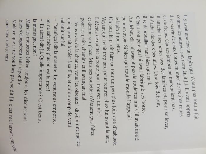 💰 PRIX FIXE quelque soit le nombre d'articles du dressing ⚠️ ÉTAT : Très bon état ⚠️ DÉTAILS : Relié. Couverture cartonnée ⚠️ RÉSUMÉ : Il y avait une fois un lapin qui n’était pas tout à fait comme les autres : son nom était Jil. Il avait appris à se servir de deux bottes munies de petites roues et de freins. Car ses jambes ne marchaient pas. Tout le monde l’appelait le lapin à roulettes. Un jour, Jil partit faire un tour un peu plus loin que d’habitude... 📦 LIVRAISON : Envoi ou remise en main propre sur Lyon