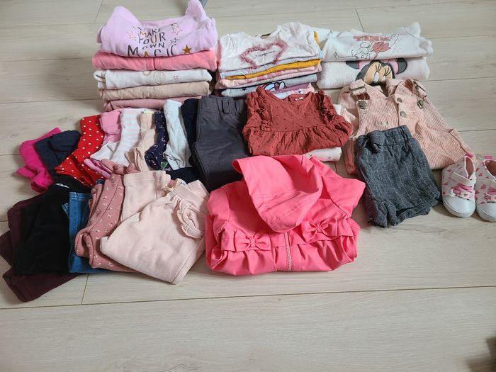 5 pyjamas 2 sweat-shirt 8 tee shirts manches longues 2 robes 1 salopette 1 short 1 imperméable 1 paire de basket 12 leggings 2 jogging 2 jeans Parfait état Divers marques : Kiabi, tape à l'œil, Primark Envoie rapide et soigné 🌸 #vetementsfille #6moisfille #kiabibébé #kiabi #primark #tapealoeil