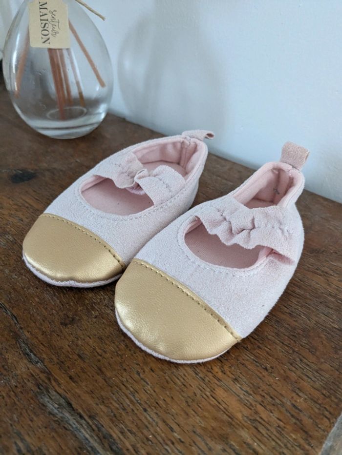 Ballerine dorées et roses 3-6 mois - photo numéro 1