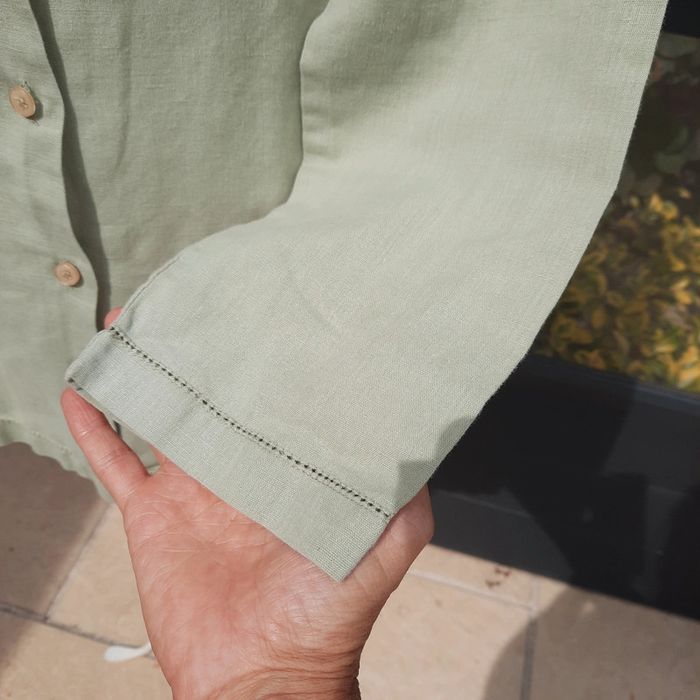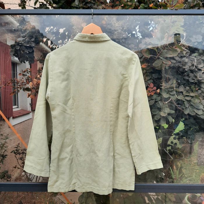 Veste chemise en lin coton vert clair T 42 - photo numéro 5