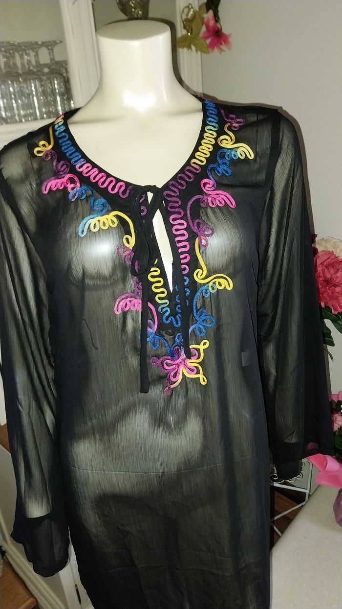 Pour la plage...ou la piscine Robe/ djellaba de plage Neuve sans étiquette 🏷 Taille unique En voile noir Broderies multicolores 100% polyester Manches flare A s'offrir... #robedeplage #tenuedeplage #djellabadeplage #robedeplagetailleunique #djellabadeplagetailleunique #tenuedeplagetailleunique #neuve #noir #multicolore #manchesflare #voilenoir #voile #transparente #broderiesmulticolores #plage #piscine #mer #farniente #bronzage #printemps #été #musthave #dressingfemmetailleunique #tailles #taillem #taille36 #taille38 #sojufemme #sojufemmetailleunique #sojufemmerobe #sojufemmerobetailleunique Envoi rapide suivi et soigné assuré