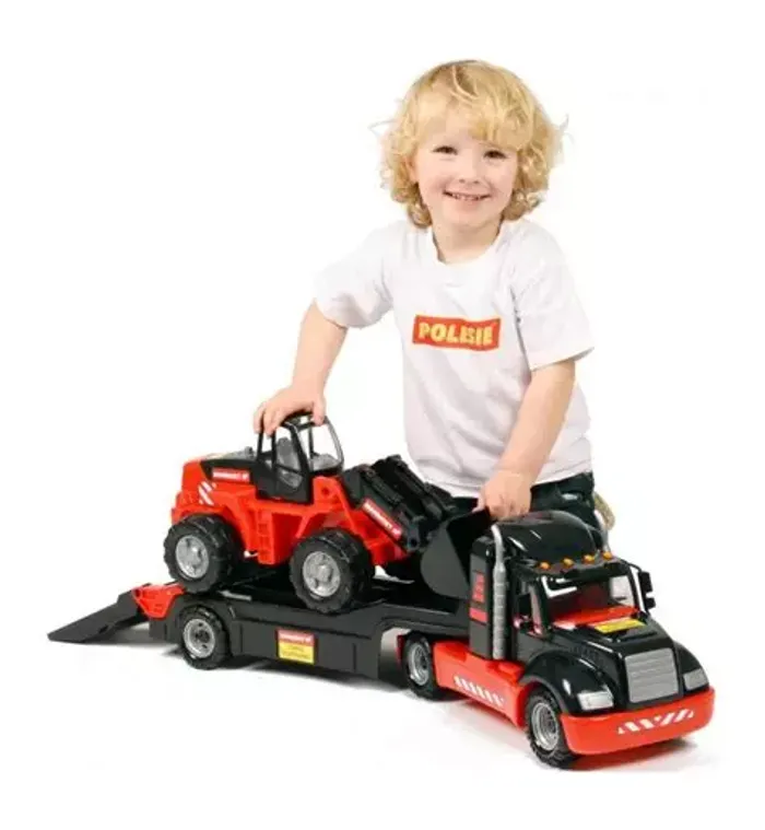 Polesie Mammoet Camion Torpedo Rouge et noir 1450645 Emmenez la pelle sur place avec ce camion torpille géant. Ce camion torpilleur Mammoet est spécialement conçu pour le transport de gros véhicules. Avec le camion lourd, il tire facilement la chargeuse avec la pelle dessus. La remorque est facilement maniable et dispose d'une rampe rabattable, de sorte que vous pouvez facilement en retirer la pelle. La pelle Mammoet dispose d'un chargeur frontal avec lequel vous pouvez facilement déplacer des matériaux. Où vas-tu travailler aujourd'hui ? Dimensions du jouet : 80x15x28 cm NE CONVIENT PAS AUX ENFANTS DE MOINS DE 3 ANS, A UTILISER SOUS LA SURVEILLANCE D UN ADULTE !