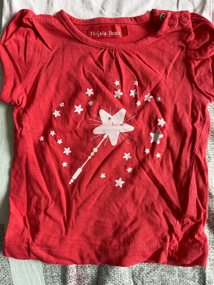2 t-shirts manches courtes Rouge et rose pale Marque Tissaia Très bon état Lot pouvant être modifié avec d’autre vêtements du dressing ou vendu à l’unitaire N’hésitez pas à demander #6moisbebefillemaevaL