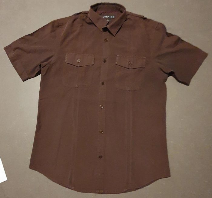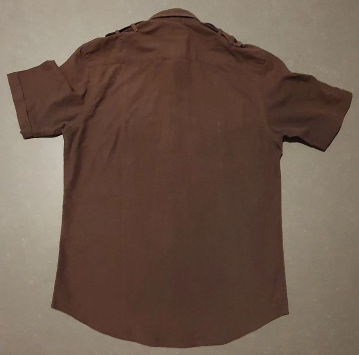Chemise portée normalement. Les épaulières sont en très bon état. Maintient au corps type slim. Avec 2 poches pectorales utilisables. Taille indiquée : S ou 37/38