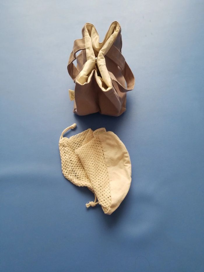 Petit sac nomade compartimenté pour transporter les gants et coton lavable pour changer bébé. + filet pour laver en machines les gants et cotons de la marque ou autre 😉
