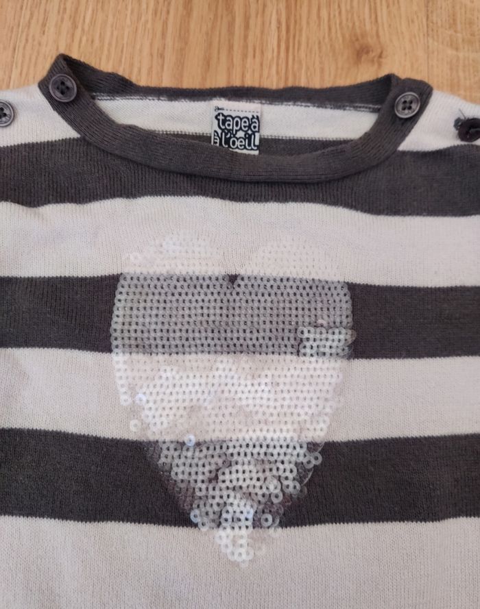 Pull fille Rayé marinière Avec coeur devant Taille 2 ans Peu porté