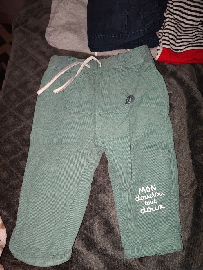 Un sac plein, bodys,jeans, pijama, sweats, salopettes, pantalons.. Je ne peux pas mettre tout en photo. Plusieurs marques comme Okaïdi, orquestra.. plusieurs taille 3,6,9 mois Bon état général