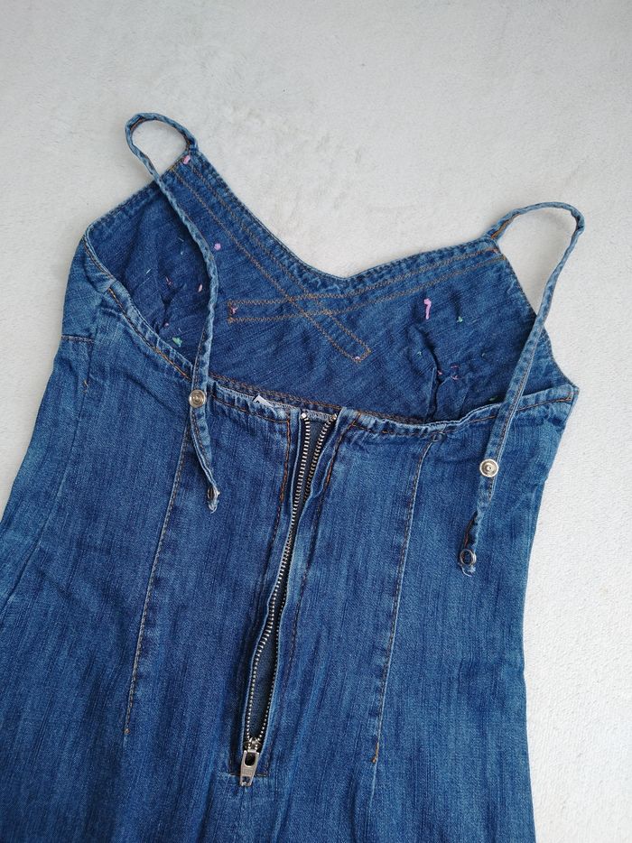 Robe en jean à bretelles Marque Fruto Da Fruta Taille 6 ans • Coloris bleu, rose • Bretelles réglables avec pressions • Fleurs en broderies et perles • Fermeture éclair au dos • Une pression qui ne fonctionne plus très bien Longueur totale : 61 cm En très bon état #evelyne_filles_6ans #evelyne_filles