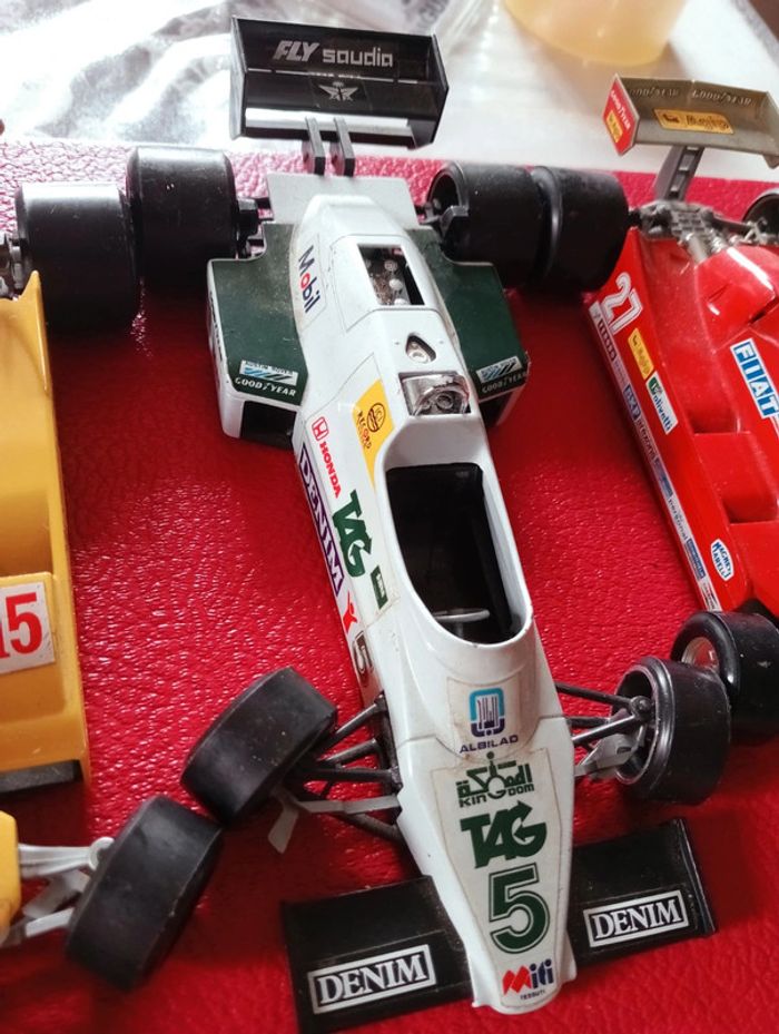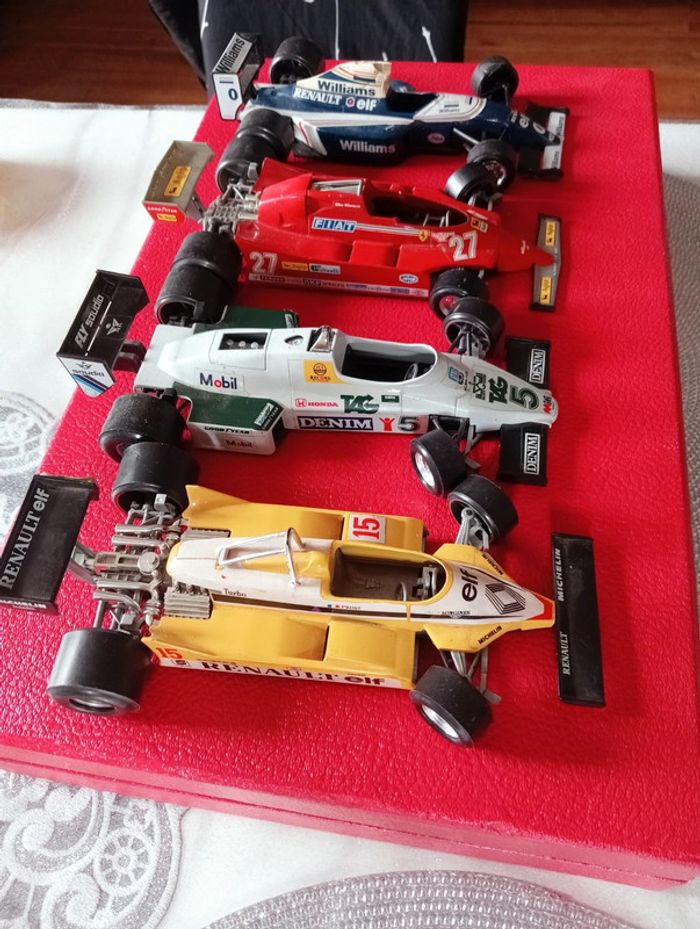 Lot de 4 voitures de collection, modèles recherchés Comportent toute un petit défaut ( 3 au niveau des roues avant et la dernière également un peu cassé sur le dessus en plus des roues) Convient malgré tout pour collectionneur sachant réparer les roues ou souhaitant les mettres en vitrines #voituredecollection #voitureminiature #kartingcollection