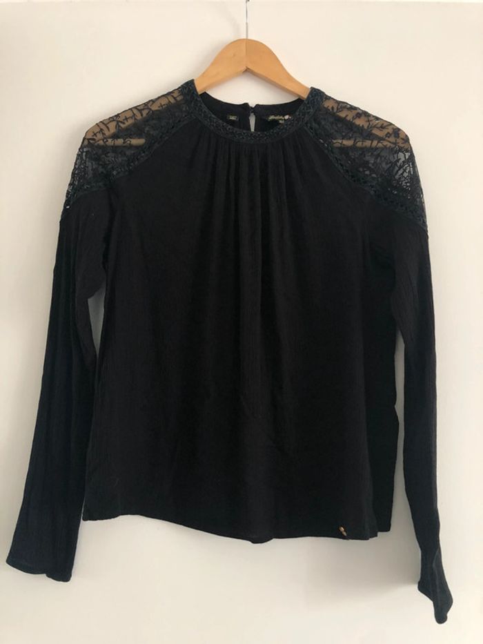 Haut noire manches longues Superdry taille 38 Fluide, dentelle sur les épaules