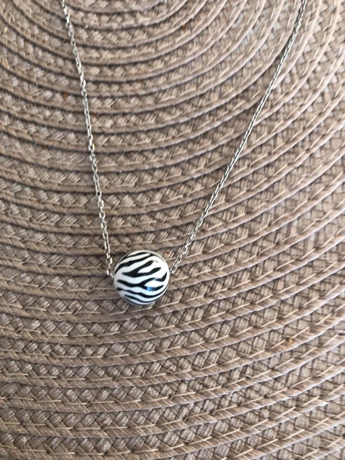 Chaîne en argent et pendentif boule zèbre - photo numéro 2