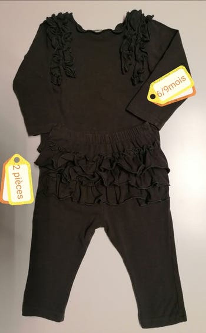 Ensemble filles, 6/9mois Gris foncé.95%coton. 5%spandex Portée. 5€