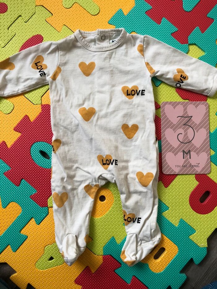 Lot de 2 pyjamas Kiabi 3 mois mixtes Celui avec le coeur a 2 petits accros, facile à repriser (personnellement c’est deja trop pour moi niveau couture 🫣)