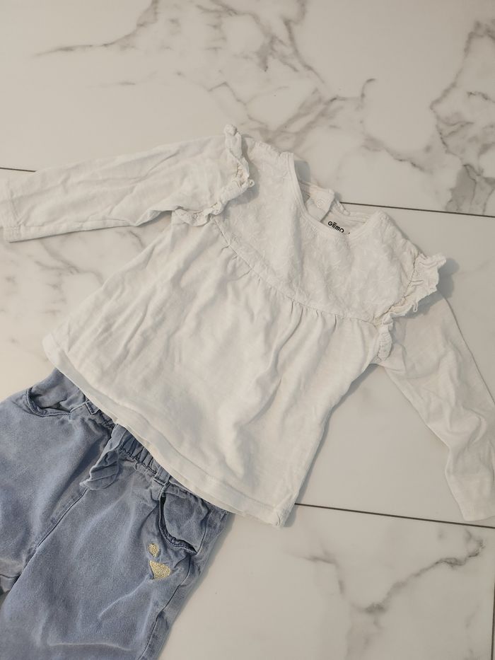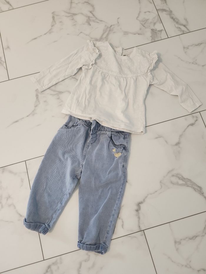 Ensemble chemisier et Jean 24 mois Très bon état Parfait avec des petit basket 🤩 Envoi rapide et soigné 🌸👌