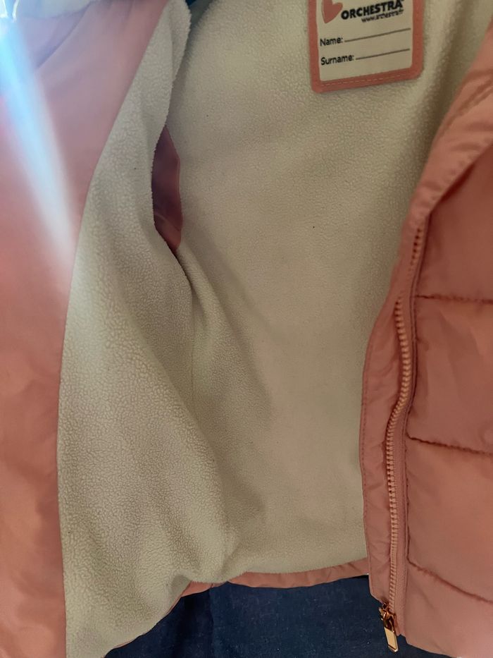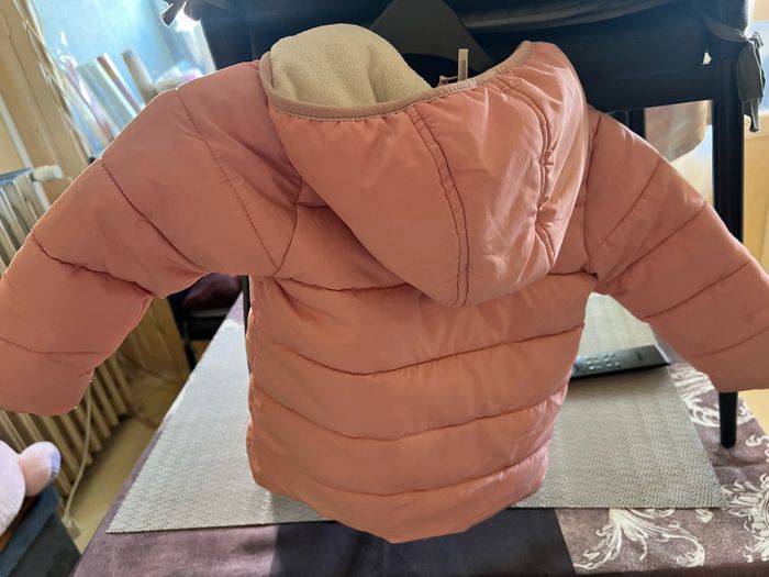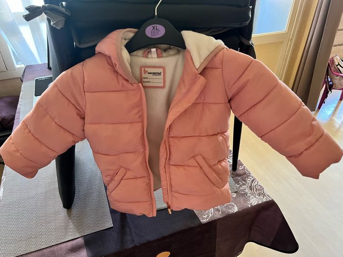 Manteau rose fourré En tres bon état Taille 36 mois mais va a du 24 mois Marque orchestra