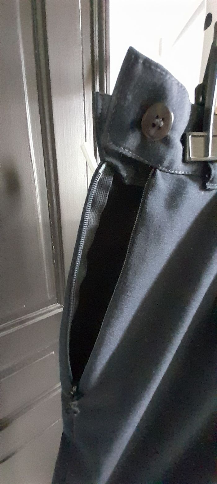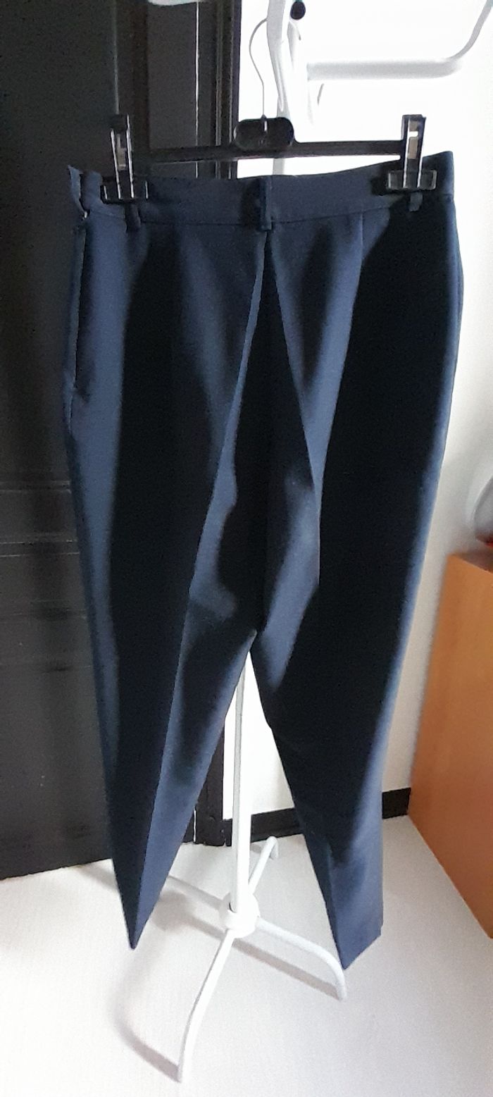 Pantalon T 42 Couleur bleu marine Attache bouton et fermeture éclair sur le côté gauche Passants pour ceinture 2 poches devant Très très bon état