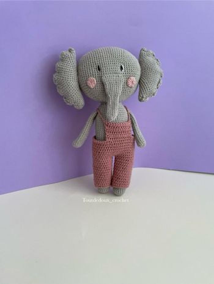 Découvrez Anna, l'adorable éléphant amigurumi qui sera le doudou parfait pour votre enfant. Fabriquée avec du fil de coton certifiée Oeko-Tex, cette peluche sera non seulement douce et câline, mais aussi sûre pour votre petit, lui offrant ainsi des moments de tendresse en toute sécurité. Pour personnaliser la salopette : choisir la couleur sur la dernière image et indiquer le numéro de la couleur désirée par message 💌 Pour les nouveautés et suivrez mon travail suivez mois sur les réseaux sociaux. @toutdedoux_crochet