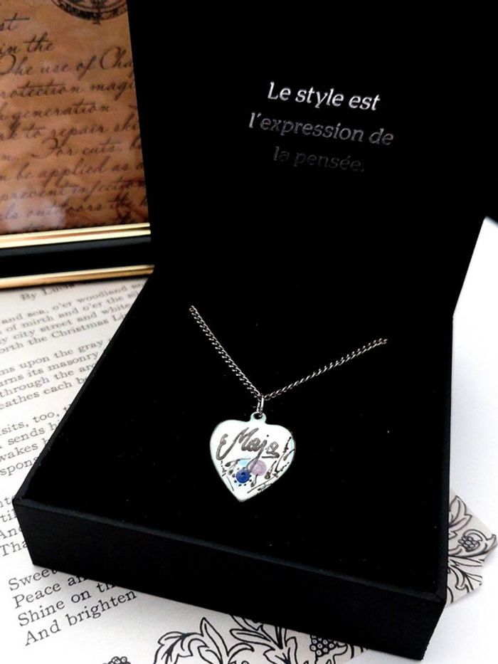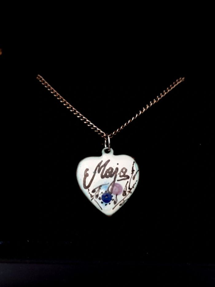 Magnifique collier chaîne couleur métal argenté avec pendentif cœur en porcelaine avec inscription. Très bon état. D'autres bijoux sont à découvrir dans mon dressing #bijouxsupernova 💙 Nous offrons 10% de réduction pour nos abonnés Instagram @caelifer_ ⚜️ Je suis disponible pour d'autres renseignements / ou demandes de lot. 💙 Les envois se font soit le jour même ou en 72h maxi ! Tags Vintage chic hippie 60's 70's 80's 90's 00's Y2k foulard soie collier bijoux fantaisie signature boucles d'oreilles bague bracelet manchette jonc parure pendentif médaille religieux ancien brocante antiguo antico juwelen bigiotteria joyería antigua antique antik vieux victorien belle époque 1920 art déco art nouveau 1930 années 50 lot gros lot lotto set carré friperie poinçon pièce rare argenté doré bronze perles strass