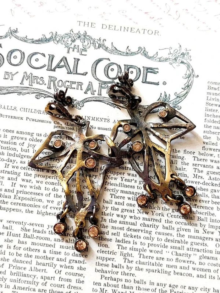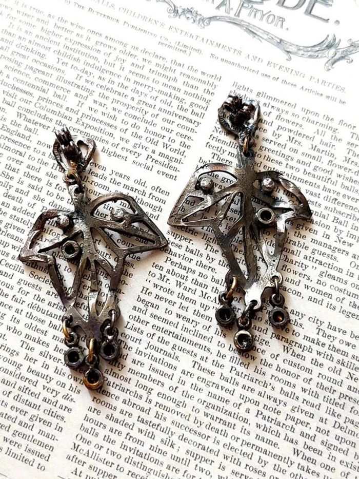 Magnifique paire de boucles d'oreilles pendantes, feuilles de vignes - photo numéro 1