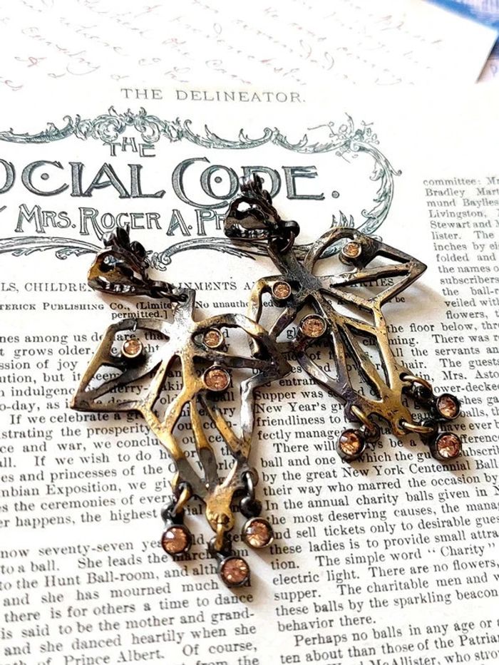 Magnifique paire de boucles d'oreilles pendantes, feuilles de vignes, couleur doré et argenté, avec petites pierres couleur ambre. Très bon état, d'autres bijoux sont à découvrir dans mon dressing #bijouxsupernova 🌌 Je suis disponible pour d'autres renseignements / ou demandes de lot. 🌌 Les envois se font soit le jour même ou en 72h maxi ! 🌌 J'accepte les offres raisonnables et les réductions sont activées sur les lots, de plus, un petit cadeau est toujours rajouté au colis. Tags Mode vintage chic hippie 60's 70's 80's 90's BCBG robe chemise pantalon jupe classe bijoux boucles d'oreilles collier pendentif bracelet celtique ethnique bohème ésotérique gothique punk grunge old school geek ancien brocante friperies france Paris parisienne qualité couture tournesol marilyn Monroe astro cosmétiques produits de beauté tissu japon breloque acier inoxydable plaqué or automne hiver printemps été Noël cadeau lune moon child fleurs petit prix réduction lot chouchou scrunchie rétro kawaii japon t-shirt débardeur tunique blouse chemisier camisa camicia vestido vestito pantalones remise lotes jurk Flores brillant coton polyester satin soie jeans elastane sexy élégant pièce rare rome Madrid multicolore noir blanc rouge bleu jaune vert rose orange violet marron pas cher soldes 50% unique look outfit tenue complète conjunto