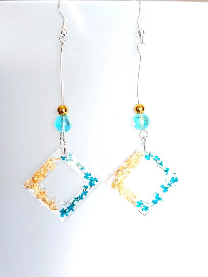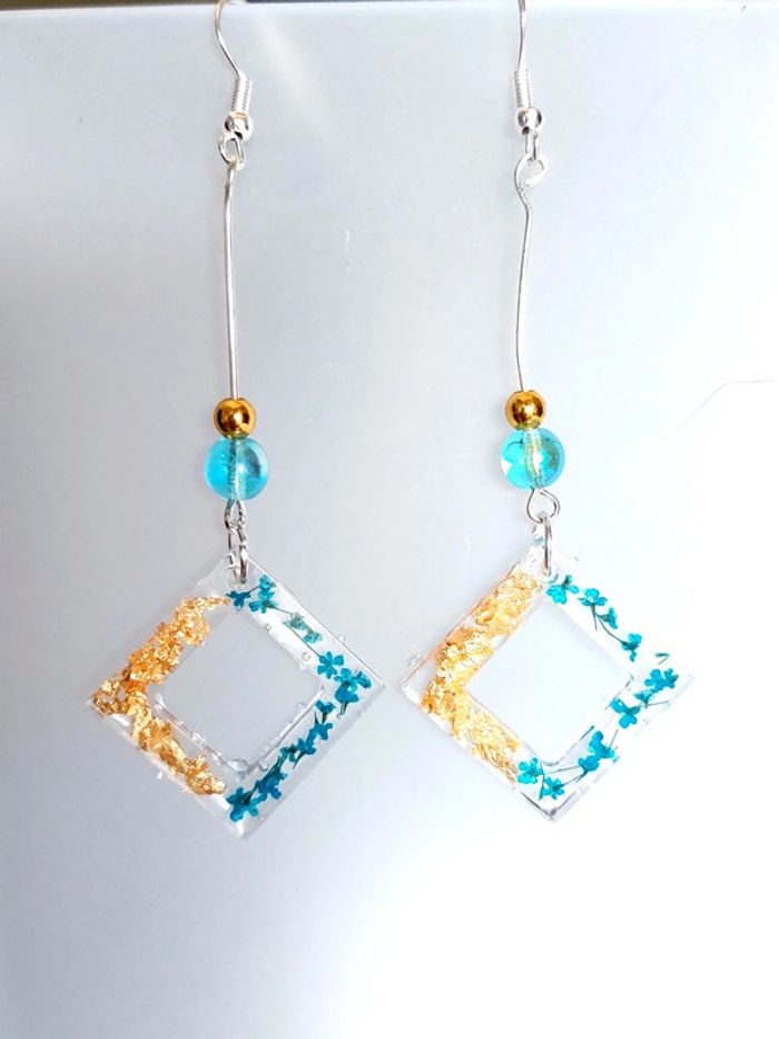 Magnifique paire de boucles d'oreilles pendantes en résine, avec feuille d'or et petites fleurs bleues. Très bon état. D'autres bijoux sont à découvrir dans mon dressing #bijouxsupernova 🌌 Je suis disponible pour d'autres renseignements / ou demandes de lot. 🌌 Les envois se font soit le jour même ou en 72h maxi ! 🌌 J'accepte les offres raisonnables et les réductions sont activées sur les lots, de plus, un petit cadeau est toujours rajouté au colis. Tags Mode vintage chic hippie 60's 70's 80's 90's BCBG robe chemise pantalon jupe classe bijoux boucles d'oreilles collier pendentif bracelet celtique ethnique bohème ésotérique gothique punk grunge old school geek ancien brocante friperies france Paris parisienne qualité couture tournesol marilyn Monroe astro cosmétiques produits de beauté tissu japon breloque acier inoxydable plaqué or automne hiver printemps été Noël cadeau lune moon child fleurs petit prix réduction lot chouchou scrunchie rétro kawaii japon t-shirt débardeur tunique blouse chemisier camisa camicia vestido vestito pantalones remise lotes jurk Flores brillant coton polyester satin soie jeans elastane sexy élégant pièce rare rome Madrid multicolore noir blanc rouge bleu jaune vert rose orange violet marron pas cher soldes 50% unique look outfit tenue complète conjunto
