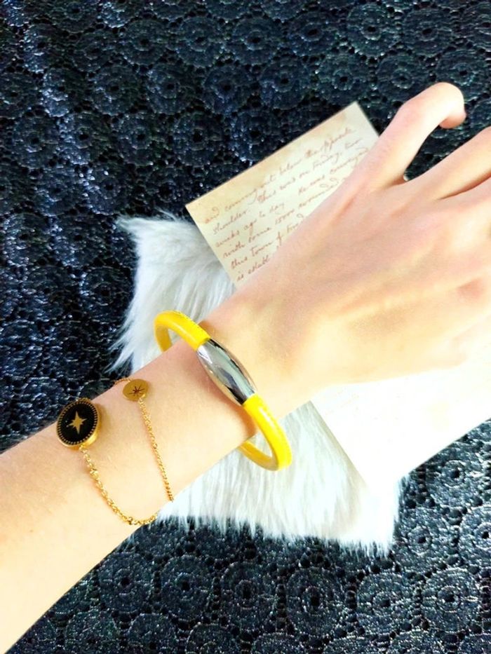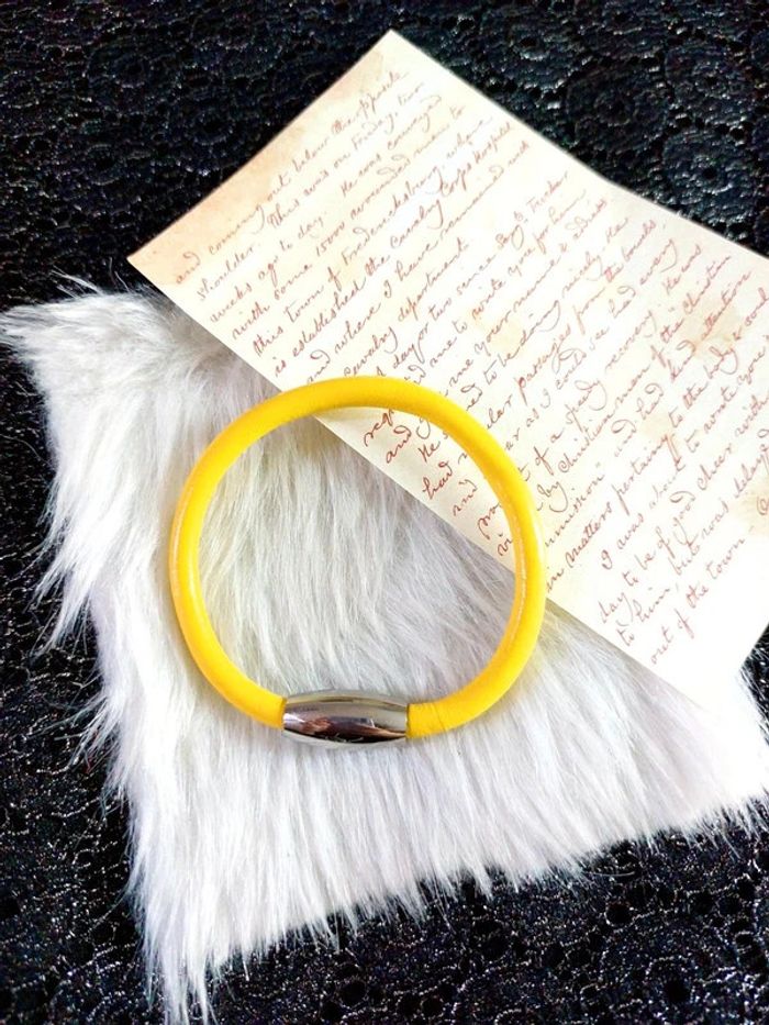 Magnifique petit bracelet en cuir jaune neuf - photo numéro 1