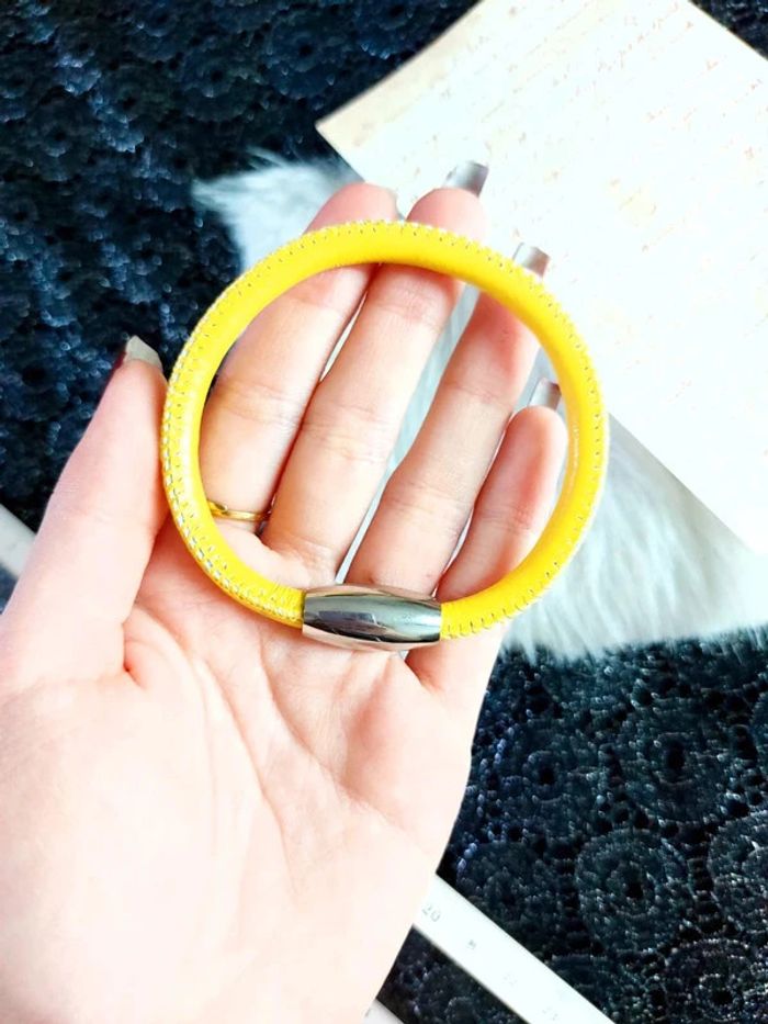 Magnifique petit bracelet en cuir jaune neuf - photo numéro 2