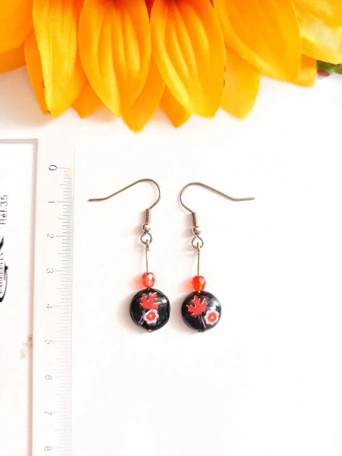 Magnifique petite paire de boucles d'oreilles pendantes noir et rouge/orange, avec feuille d'érable et petite fleur. Très bon état. D'autres bijoux sont à découvrir dans mon dressing #bijouxsupernova 🌌 Je suis disponible pour d'autres renseignements / ou demandes de lot. 🌌 Les envois se font soit le jour même ou en 72h maxi ! 🌌 J'accepte les offres raisonnables et les réductions sont activées sur les lots, de plus, un petit cadeau est toujours rajouté au colis. Tags Mode vintage chic hippie 60's 70's 80's 90's BCBG robe chemise pantalon jupe classe bijoux boucles d'oreilles collier pendentif bracelet celtique ethnique bohème ésotérique gothique punk grunge old school geek ancien brocante friperies france Paris parisienne qualité couture tournesol marilyn Monroe astro cosmétiques produits de beauté tissu japon breloque acier inoxydable plaqué or automne hiver printemps été Noël cadeau lune moon child fleurs petit prix réduction lot chouchou scrunchie rétro kawaii japon t-shirt débardeur tunique blouse chemisier camisa camicia vestido vestito pantalones remise lotes jurk Flores brillant coton polyester satin soie jeans elastane sexy élégant pièce rare rome Madrid multicolore noir blanc rouge bleu jaune vert rose orange violet marron pas cher soldes 50% unique look outfit tenue complète conjunto