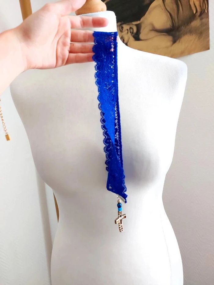 Collier bleu en dentelle avec pendentif croix - photo numéro 5