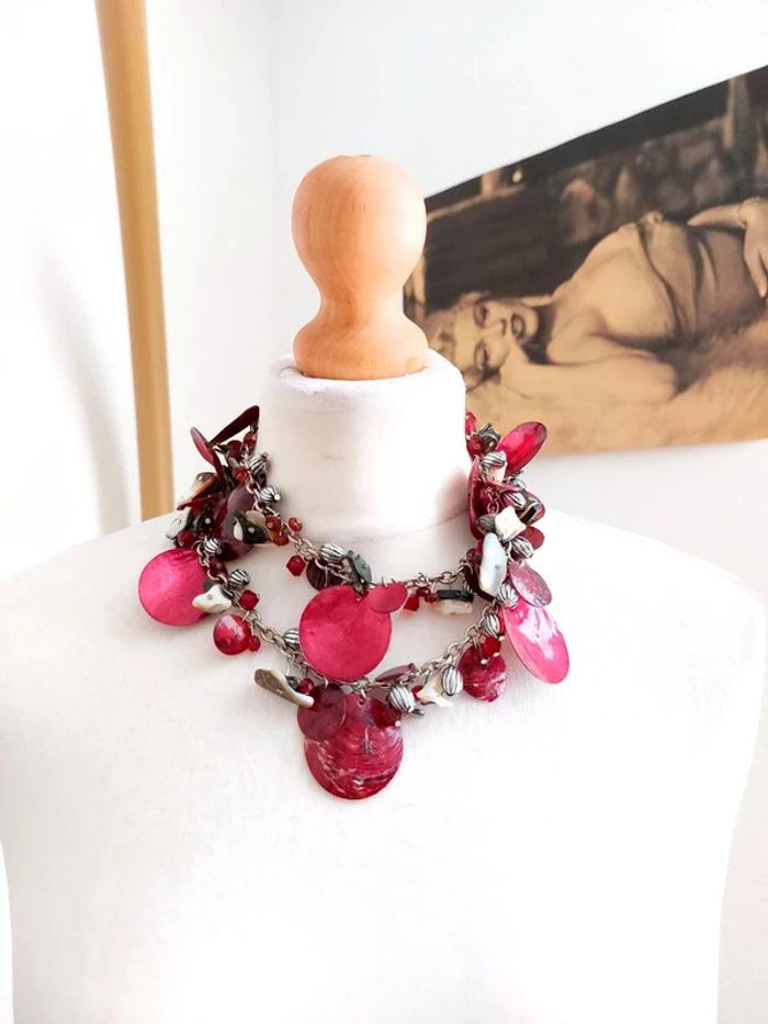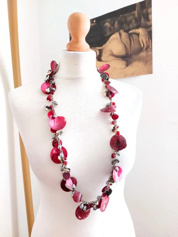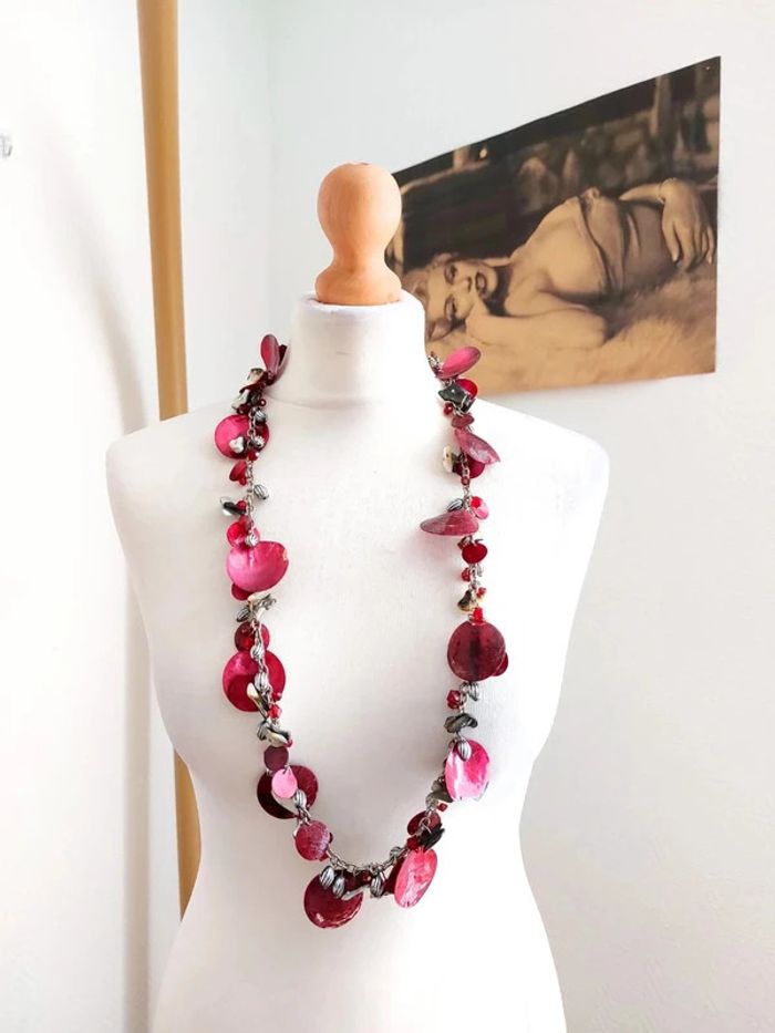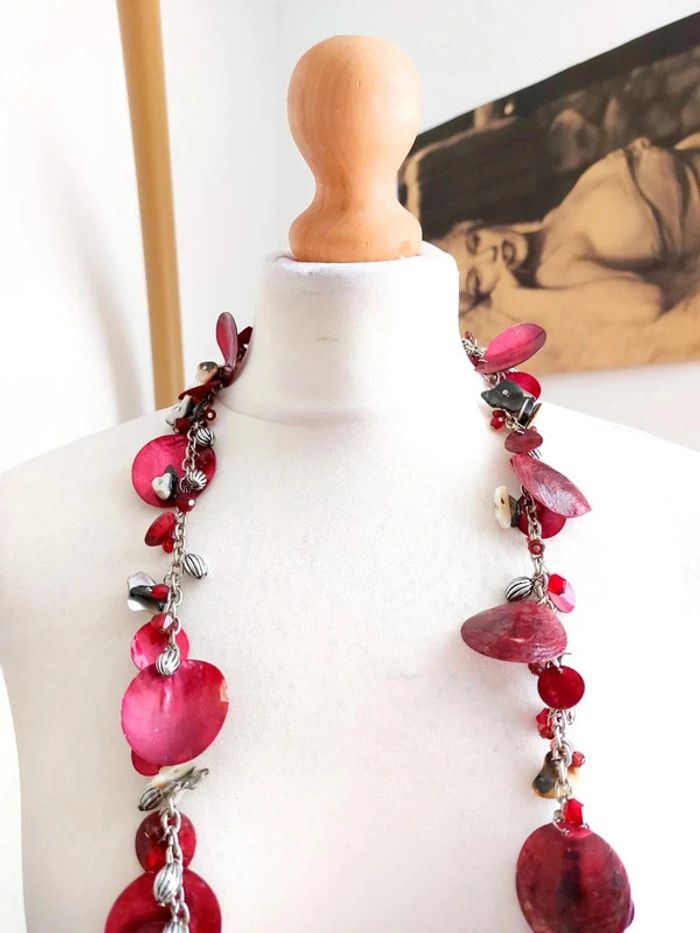 Magnifique collier sautoir, style vintage, avec perles couleur rouge nacré. Neuf mais certaines perles de nacres sont cassé (rien de dérangeant) . Prix d'origine 17€ D'autres bijoux sont à découvrir dans mon dressing #bijouxsupernova 🌌 Je suis disponible pour d'autres renseignements / ou demandes de lot. 🌌 Les envois se font soit le jour même ou en 72h maxi ! 🌌 J'accepte les offres raisonnables et les réductions sont activées sur les lots, de plus, un petit cadeau est toujours rajouté au colis. Tags Mode vintage chic hippie 60's 70's 80's 90's BCBG robe chemise pantalon jupe classe bijoux boucles d'oreilles collier pendentif bracelet celtique ethnique bohème ésotérique gothique punk grunge old school geek ancien brocante friperies france Paris parisienne qualité couture tournesol marilyn Monroe astro cosmétiques produits de beauté tissu japon breloque acier inoxydable plaqué or automne hiver printemps été Noël cadeau lune moon child fleurs petit prix réduction lot chouchou scrunchie rétro kawaii japon t-shirt débardeur tunique blouse chemisier camisa camicia vestido vestito pantalones remise lotes jurk Flores brillant coton polyester satin soie jeans elastane sexy élégant pièce rare rome Madrid multicolore noir blanc rouge bleu jaune vert rose orange violet marron pas cher soldes 50% unique look outfit tenue complète conjunto