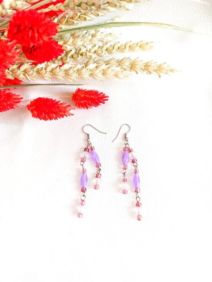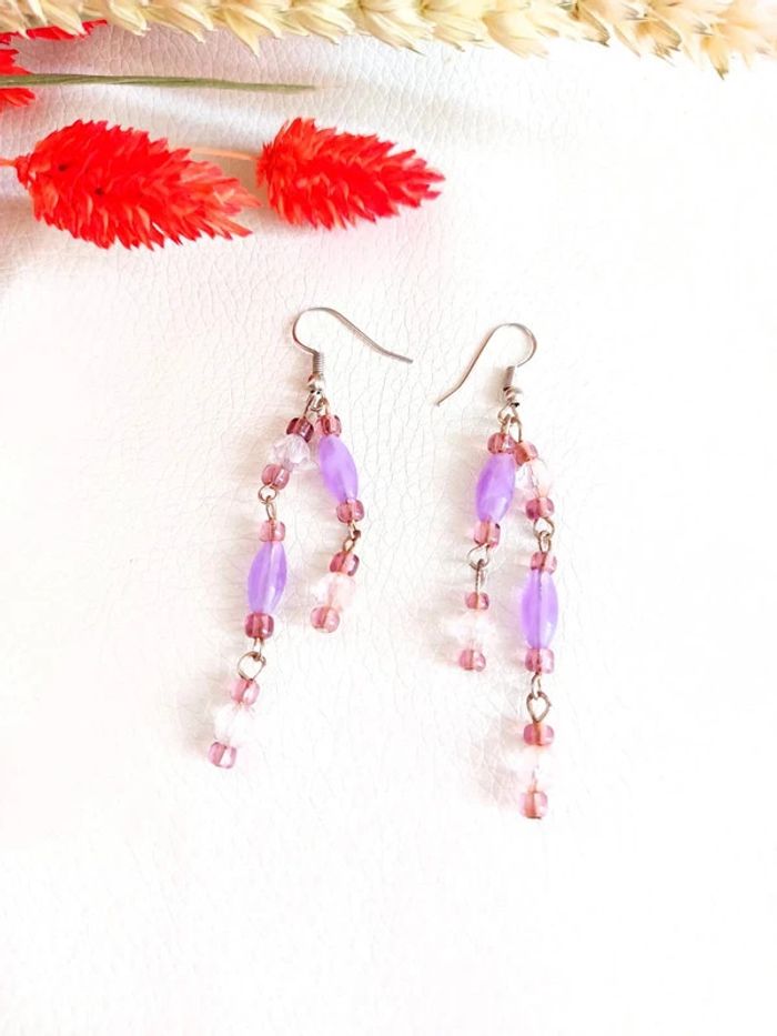 Boucle d'oreille pendantes en perles violette - photo numéro 1
