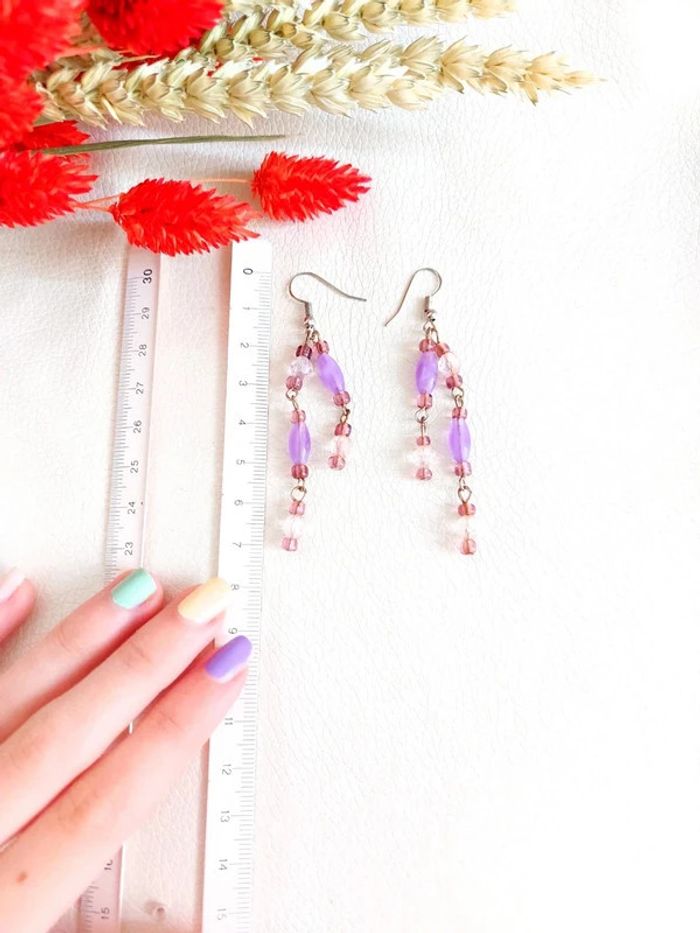 Boucle d'oreille pendantes en perles violette - photo numéro 5