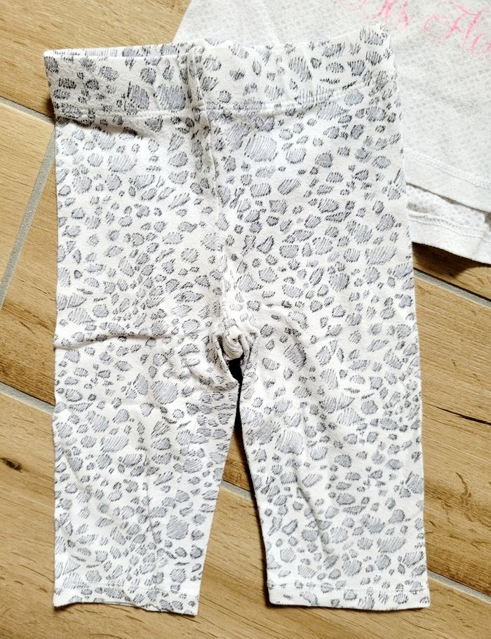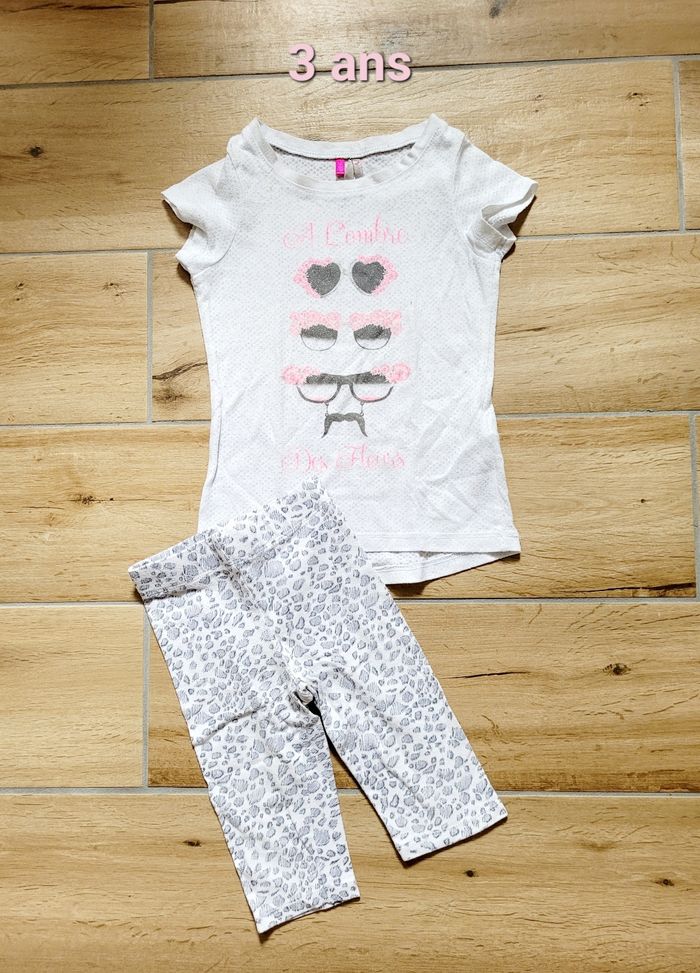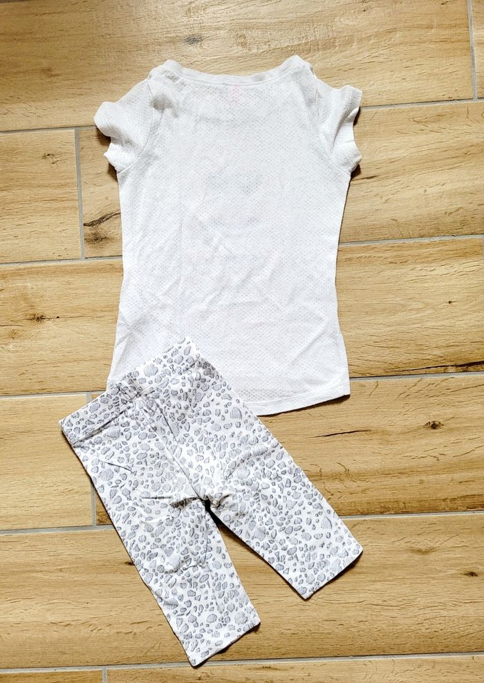 Pyjama 2 pièces en coton, t-shirt manches courtes avec un petit motif sur le devant et legging 3/4.