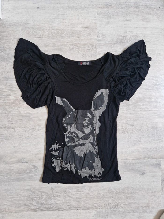 Top Morgan noir #julilo7femme Motif chien gris avec paillettes Étiquette de taille coupée mais convient à un XS Épaules volantées