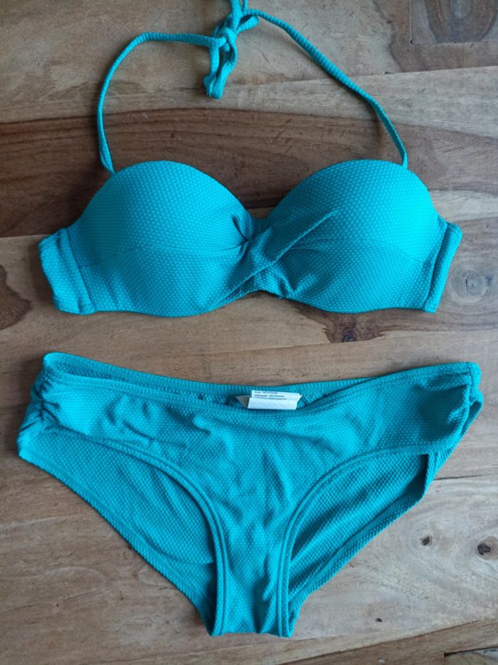 Bikini turquoise Taille 38 Haut avec coque Très bon état, quasiment pas porté.