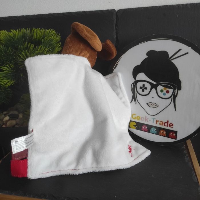 Doudou plat marron blanc Mon Petit Elan cadet Rousselle Rouge Feuille Spirale  #geektradedoudou