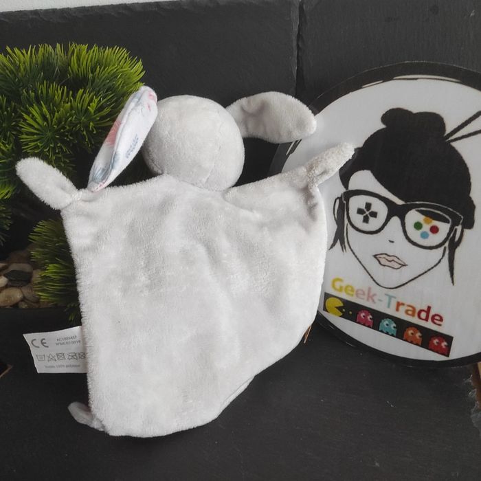 Doudou Lapin Super Héros IKKS Blanc Rose mouchoir Plume Palmier #geektradedoudou - photo numéro 1