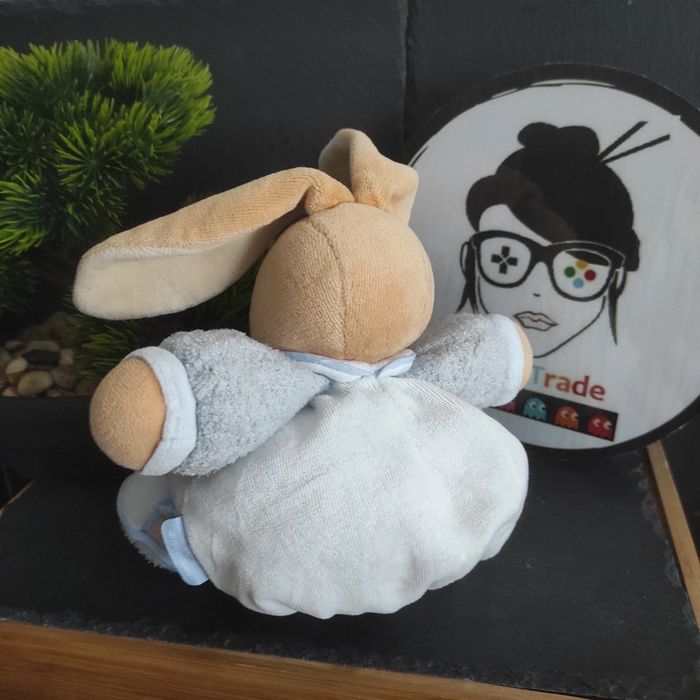 Doudou Lapin Boule Blanc et Bleu Broderie Bonhommes Kaloo #geektradedoudou - photo numéro 2