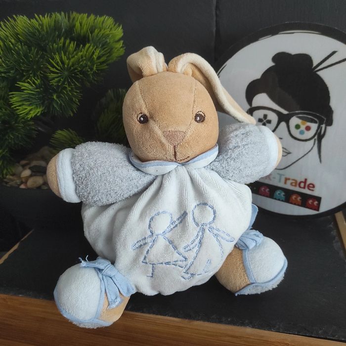Doudou Lapin Boule Blanc et Bleu Broderie Bonhommes Kaloo #geektradedoudou Bon etat Afin de ne pas abîmer les doudous et de laisser le choix dans l'utilisation de la lessive les peluches ne sont pas lavées avant envoi Description complément : #geektradekaloo Petit nettoyage à prévoir Vous achetez ce que vous voyez les photos font entièrement partie de la description Transport : Les frais de transport comprennent les frais du transporteur ainsi que l'emballage pour protéger au mieux votre achat. Chaque achat est envoyé en format colis avec numéro de suivi Le poids du colis est de 500g finit (je ne peux pas faire moins) il peut donc y avoir plusieurs objets dans le carton si vous le souhaitez (contactez moi afinde grouper les frais de port) Référencement : #geektradedoudou #peluche #plush  #doudou #enfant #bebe