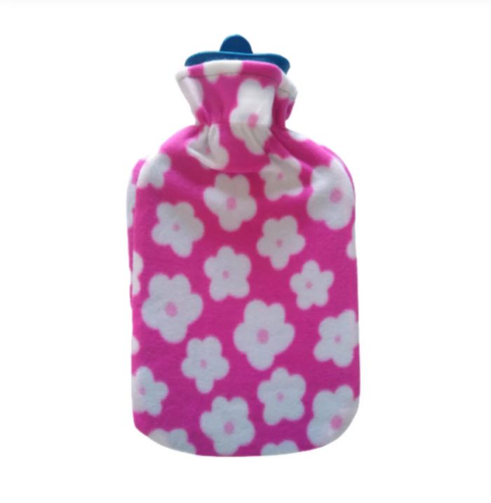 Bouillotte 2L + housse polaire rose/blanche floral