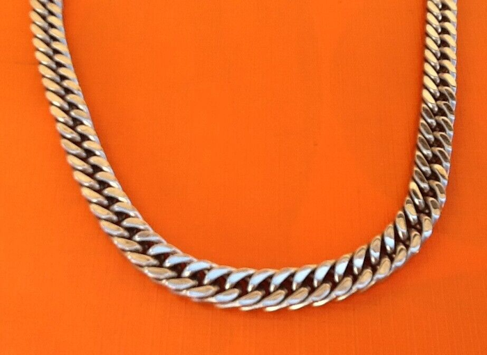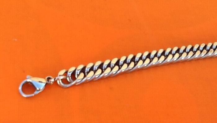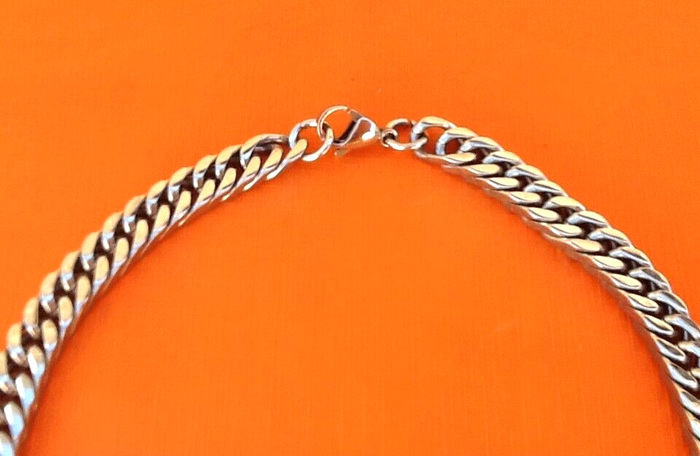 Chaîne collier Maille gourmette Acier inoxydable Fermoir mousqueton Longueur : 600mm Largeur : 8mm Poids total : 85grs